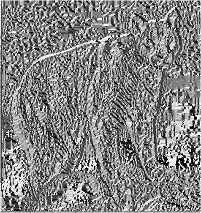 | Оригінальне зображення Cougar. | Інверсне зображення величини градієнта Cougar. | Мапа нормованного направлення градієнта Cougar. |