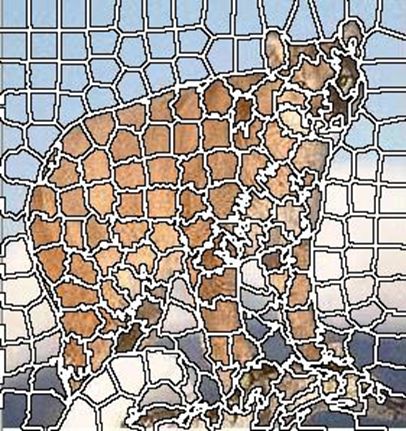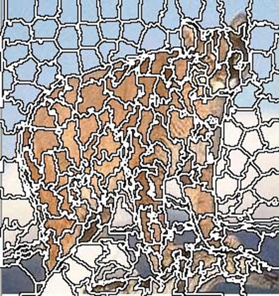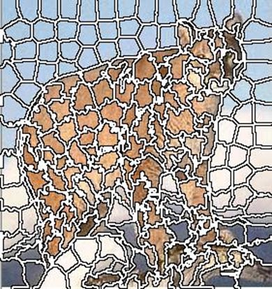 В деяких випадках в якості характеристики відстані використовується значенния \[ D=d_c+\frac{d_s}{S} m,m\in [1,20]. \] Рівняння може бути пристосовано для зображень у градаціях сірого шляхом налаштування \[ d_c=\sqrt{(l_j-l_i )^2 }. \] Наведемо приклади суперпіксельної сегментації для різних параметрів.![]() | ![]() | |