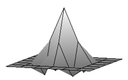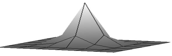 При визначенні цієї розмірності використовуються кубики із гранями однакового розміру. У цьому випадку, природно, справедливо: \(L_d(\delta)=N(\delta)\delta^{dc}\),де N(δ) - кількість кубиків, що покриває область G. Шляхом логарифмування й переходу до межі при зменшенні грані кубика одержуємо: \[ d_c=-\lim_{\delta\to 0}\frac{\log{N(\delta)}}{\log{\delta}}, \] якщо ця межа існує. Слід зазначити, що в більшості чисельних методів визначення фрактальної розмірності використовується саме \(d_c\), при цьому необхідно враховувати, що завжди справедливо умову: \(\sigma\le d_c\). Для регулярних само подібних фракталів ємнісна розмірність і розмірність Хаусдорфа-Безиковича збігаються, тому термінологічно їх часто не розрізняють і говорять просто про фрактальну розмірність об'єкта. На жаль класичний підхід дозволяє оцінити фрактальний розмір об’єктів на площині, наприклад, берегову лінію, а з тим, щоб оцінити двовимірний об’єкт, такий я зображення, є великі проблеми. Але все не так погано, існують деякі підходи, які ми і розглянемо.Метод Triangular Prism Surface Area.