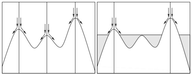 Знаходимо мінімальний і максимальний рівні сірого в межах кожної квадратної області зі стороною r. Таким чином, визначаються двомірна мінімальна й максимальна функції для кожного кроку решітки. Потім для всього зображення визначається різниця об'єму між мінімальними й максимальними функціями.