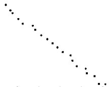 Будемо вважати, що якщо для заданого порогу δ>0 виконується нерівність \(\max_i\Phi_i\le\delta\), то лінія достатньо добре описується прямою \(x\cos\varphi+y\sin\varphi+c=0\), яка знаходиться з умови регресії.