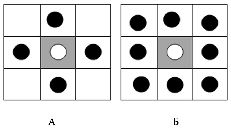 Рис. 1 А) 4-х зв'язана область; Б) 8-ми зв'язана область.