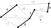 такое же, как набор узлов в исходном графе, т.е. \(V_t = V\), и множество ребер задано в виде