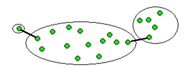 где \(d(\bullet,\circ)\) степень схожести между объектами (чаще всего это расстояние), а ε - максимальное значение порога, формирующего один кластер.