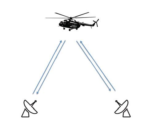 Мультистатическая система с двумя РЛС, освещающими вертолёт.