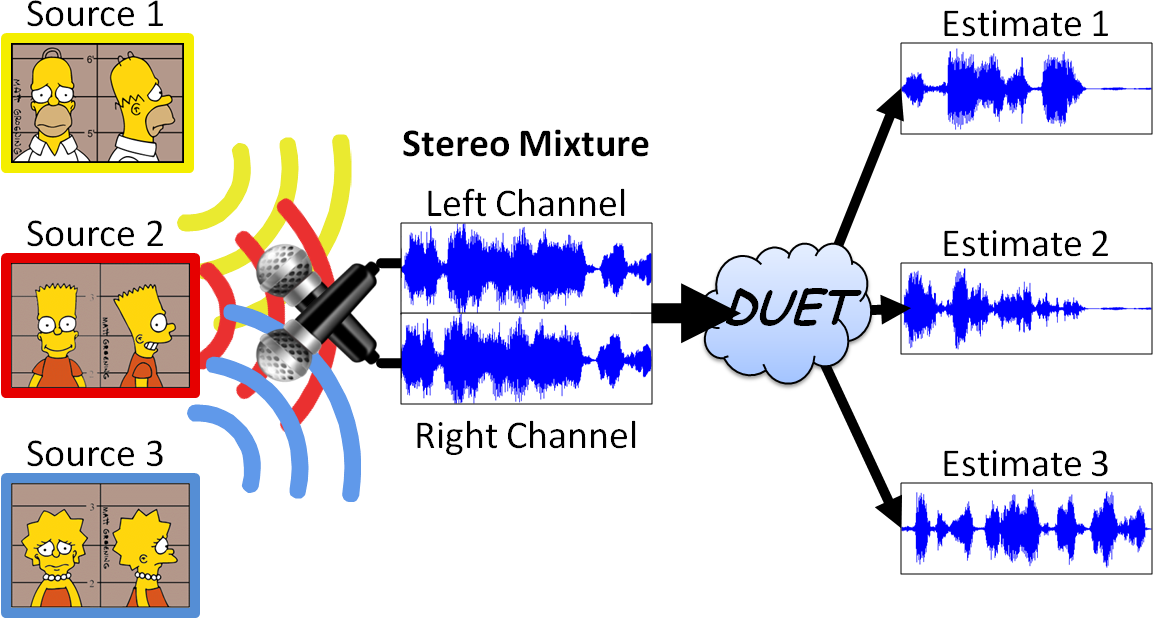 Слово «слепое» означает, что мы не берем на себя никаких предварительных знаний об источниках \(\mathbf{s}\) или о процессе смешения \(\mathbf{A}\),