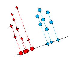 линейный дискриминантный анализ Фишера (Fisher Linear Discriminat Analysis- LDA) в своей идее имеет иной характер.