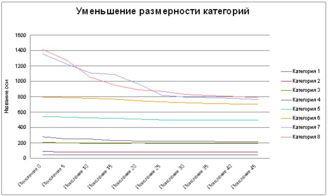 актуальна задача сокращения размерности классов. Для этой цели, так же, как и в предыдущем случае, использовались генетические алгоритмы.