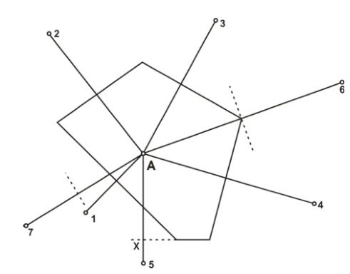 Для непустой ячейки Вороного \(V(R), R \subset S \) натуральные соседи для \(r\in R \) - вершины треугольников Делоне, инцидентных к \(V(R) \). Двумерный многогранник Вороного показан на следующем рисунке.