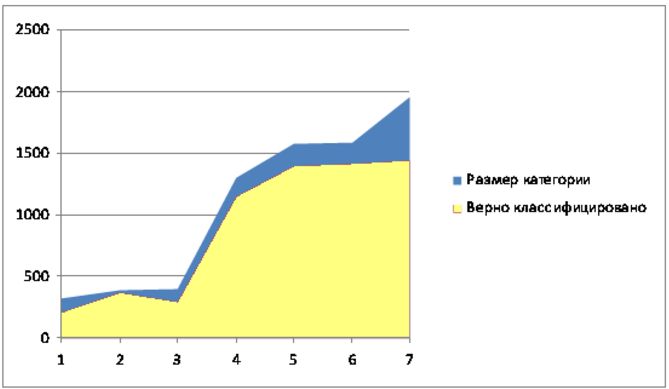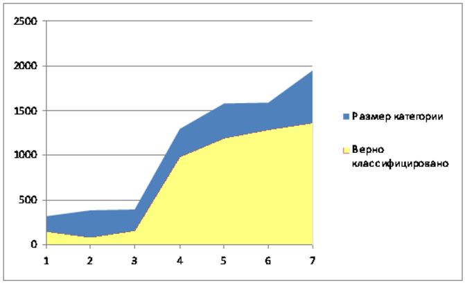 Таким образом, для тестовой базы Reuters при условии попадания в класс не менее 90% документов, удалось сократить размерность классов