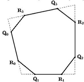 Таким образом для каждой вершины \({\bf P} _i\) генерируем новую точку \({\bf P} _i'\) как среднее значение вершин