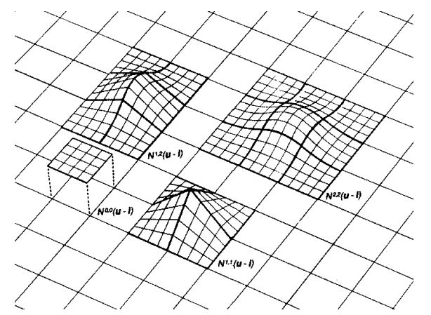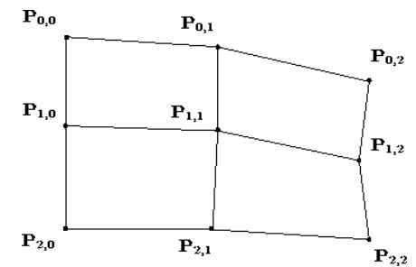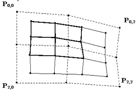 Считаем, что биквадратные однородные В-сплайн поверхности \({\bf P} (u,v)\) определены \(3 \times 3\) массивом контрольных