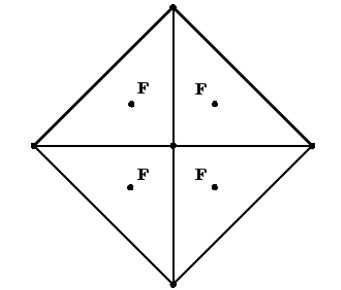 Doo и Sabin построили точки как взвешенные средние значения четырех точках полигона - в его вершинах: