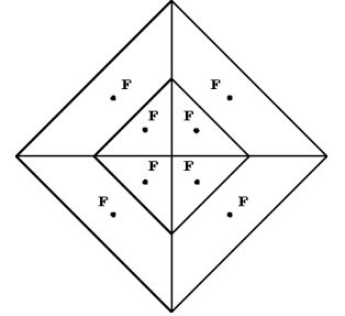 новые четыре точки мы получаем новую четырехугольную решетку. Последовательно повторяя этот процесс, получаем описание