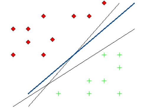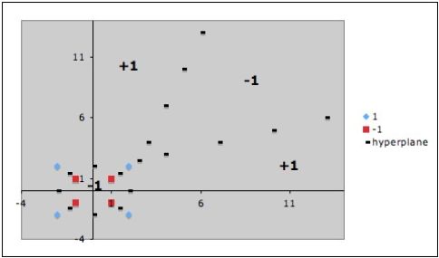 К сожалению, описанный алгоритм реализуем только для линейно разделимых множеств, что само по себе встречается достаточно нечасто. Приведем
