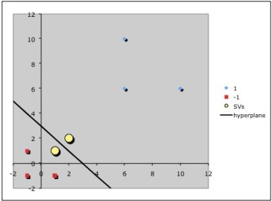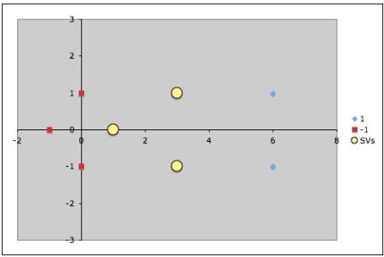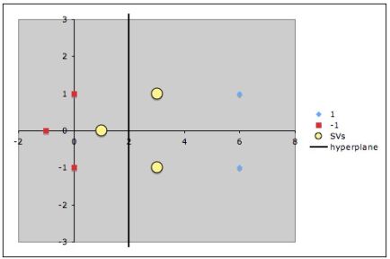 Значение \(w_0 \) также можно найти, учитывая, что для любого \(0 \le \alpha _i \le \beta \) и \(\alpha _i \left[ {u_i \left( {w^tx_i + w_0 } \right) - 1} \right] = 0\).