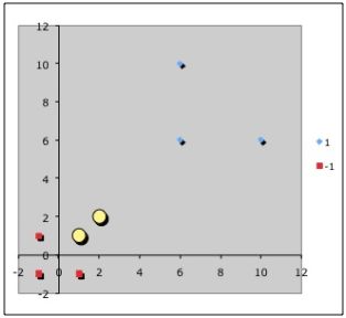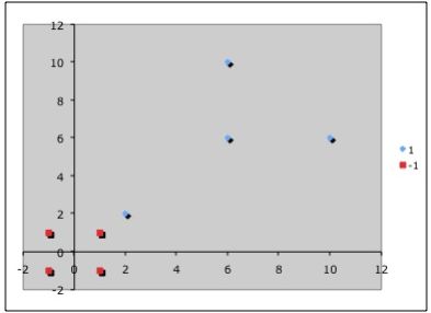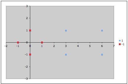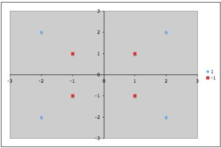 Класс[1]: \(x_{1} =[1,-1], x_{2}=[-1,1].\)
