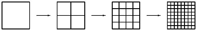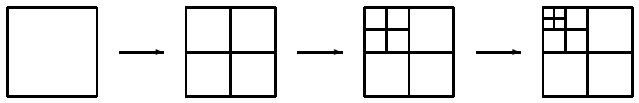 же алгоритм применяется к столбцам каждой из полученных матриц. В результате из каждой матрицы вновь получается две.