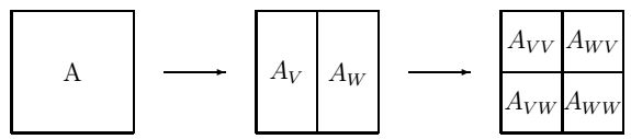 \(A_{VW}\). Результатом аналогичного преобразования матрицы \(A_{W}\) есть матрицы \(A_{WV}\) и \(A_{WW}\). Пространство