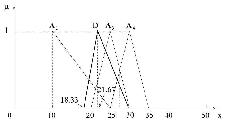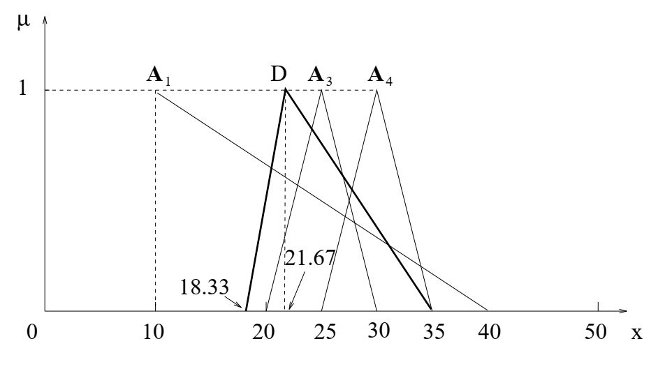 D\stackrel{\triangle}{=}\mu_{D}(x)=\min\left(\mu_{A_1}(x),\mu_{A_3}(x),\mu_{A_4}(x)\right)
