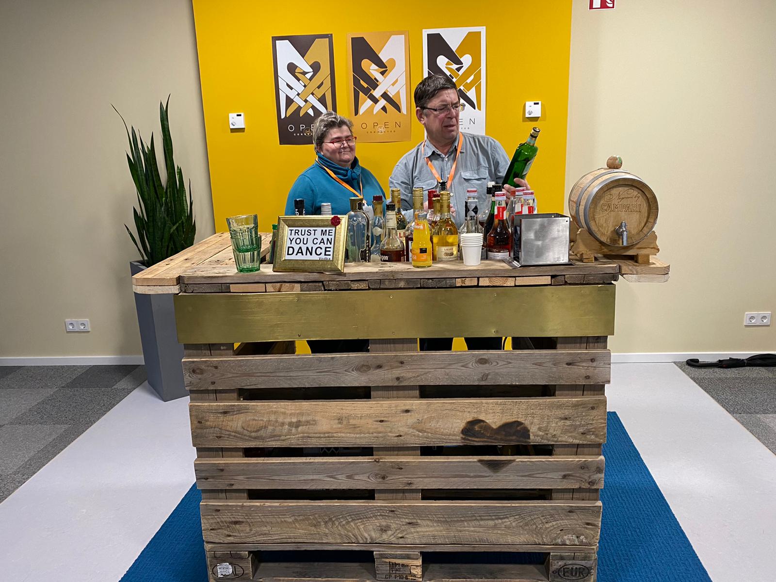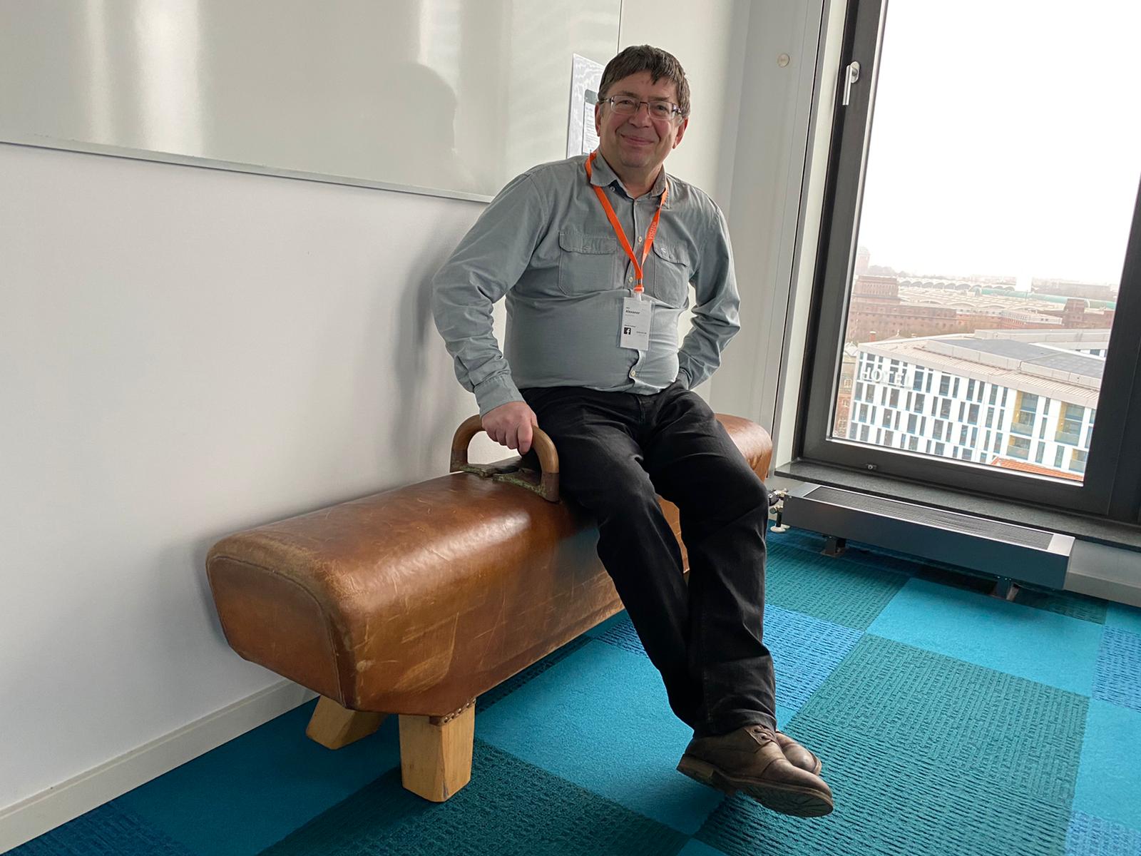 в якості підставки під монітор - ящик, в якості тумбочки - діжка, a гімнастичний кінь замінює крісло.