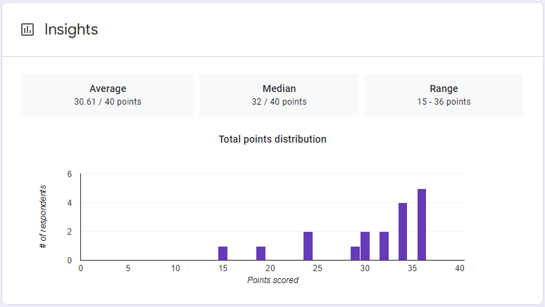 Tests showed a good median - 32 of 40 points in total. The record was 36 points after the first 30 minutes of exam!